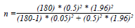 Como población, tomamos en cuenta el número total de casos de hemorragia posparto reportados en el 2012, que fueron 180,16para el 95% de confianza Z = 1.96, y como no se tienen los demás valores se tomará