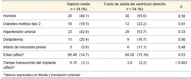 En ninguno de los dos grupos se encontraron diferencias entre las características demográficas, a excepción del tiempo transcurrido desde la colocación del electrodo de estimulación ventricular (cuadro I).