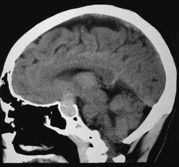 Se describe el caso clínico de un paciente masculino de 42 años de edad, sin antecedentes médicos de importancia, el cual inicia su padecimiento 13 días previos a su ingreso hospitalario con cefalea de moderada intensidad, tipo pulsátil, de predominio frontal y retroorbitario, con intensidad de 5/10 en la escala visual análoga del dolor, así como ambliopía bilateral de predominio izquierdo y fotofobia. Acude a hospital oftalmológico en donde se le realiza diagnóstico de coroidopatía serosa, sin instaurar tratamiento alguno. El cuadro clínico evoluciona continuando con cefalea, la cual aumenta de intensidad, por lo que acude con facultativo, quien recomienda realización de tomografía, en la cual se evidencia una masa hiperdensa de 2.5 x 2 cm, aproximadamente, que ocupa toda la región selar (figura 1).