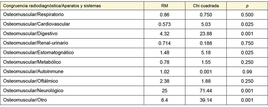 *Para comparar la siguiente asociación se tomó como referencia el sistema osteomuscular por ser el sistema cuyos diagnósticos requirieron de más estudios