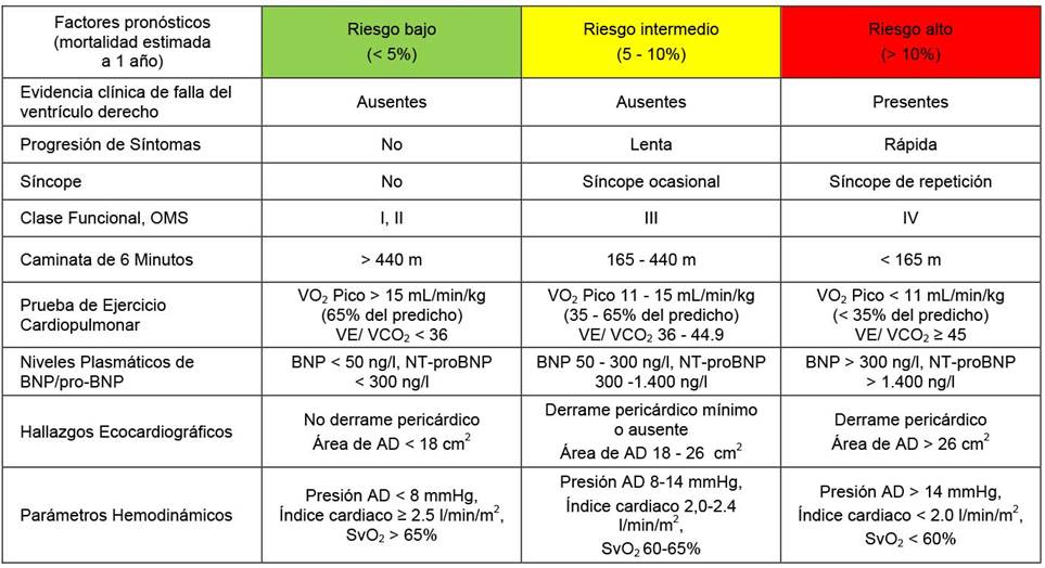 La hipertensión arterial pulmonar continúa siendo una enfermedad con una alta morbilidad y mortalidad, por lo que su tratamiento se hace cada vez más complejo. La evaluación de parámetros de riesgo múltiples para mortalidad a un año, de acuerdo con la evidencia científica, parece ser una aproximación sensata para establecer el tratamiento.