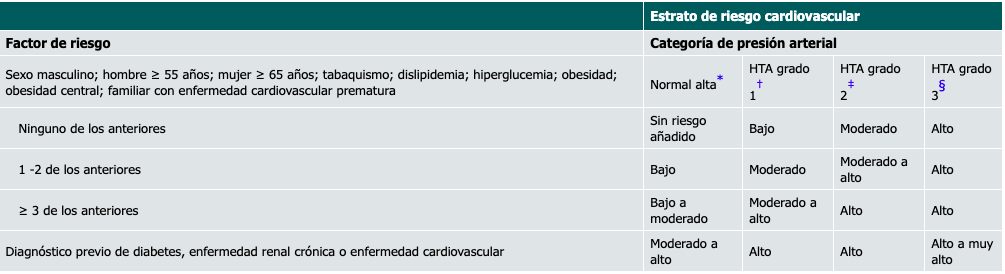 Estratificación del RCV según el tipo, el número de factores de riesgo y la categoría de presión arterial