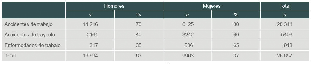 Se expidieron 97 901 certificados de incapacidad temporal para el trabajo en el ramo de riesgos de trabajo por un total de 598 082 días (1638.5 años), 23 815 certificados iniciales (71 858 días) y 74 031 certificados subsecuentes (525 735 días) con un importe total de 150 284 001 pesos mexicanos, como se puede observar en el cuadro II. Solo 55 certificados de incapacidad temporal para el trabajo (489 días) no produjeron subsidio.