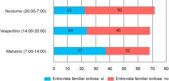 3. El turno matutino es el turno ideal para conseguir una entrevista familiar a favor de la donación (p = 0.012), como se puede ver en la figura 3.
