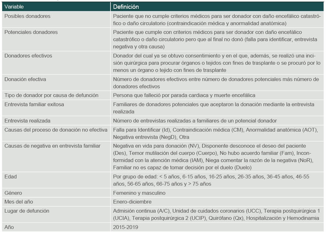Se realizó un estudio observacional, transversal y retrospectivo. La población de estudio la conformó el registro de defunciones perteneciente a la Coordinación Hospitalaria de Donación de Órganos y Tejidos con Fines de Trasplante de la UMAE Hospital de Cardiología No. 34 en el periodo de junio de 2015 al 31 de diciembre de 2019.