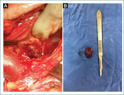 Clinical case: 48-year-old female, with a history of chronic kidney disease with persistent SHPT, as well as subtotal parathyroidectomy, subsequent resection of parathyroid remnants twice. She was treated with medical management without obtaining adequate response. Previous location of hypercaptant lesion by single photon emission computed tomography, the patient underwent a sternotomy with 3 × 2 cm mediastinal ectopic parathyroid fixed to aortic root. The patient evolved satisfactorily with a decrease in parathyroid hormone levels, with a 18-month follow-up of the procedure with normal paratohormone values and entered the renal transplant protocol while waiting for a donor.