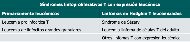 El diagnóstico diferencial incluye principalmente otros síndromes linfoproliferativos T con afectación en sangre periférica e infiltración cutánea, como el síndrome de Sézary, la leucemia de linfocitos grandes granulares y la leucemia-linfoma de células T del adulto (Cuadro II).4,13,14,15,16