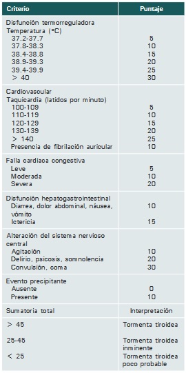 Escala de Burch-Wartofsky para el diagnóstico de tormenta tiroidea