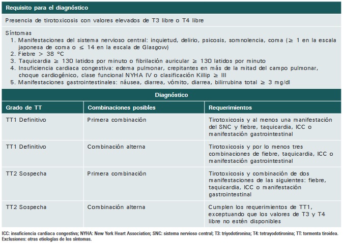 Criterios diagnósticos para la tormenta tiroidea (Japan Thyroid Association)
