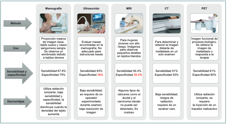 Entre los distintos enfoques que hoy en día existen para hacer un diagnóstico de CaMa se encuentran los métodos de análisis de imagen, como la mastografía, la imagen de resonancia magnética (MRI), el ultrasonido