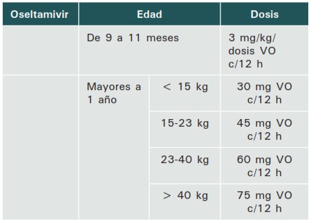 Si el paciente se presenta aún en temporada de circulación de virus influenza, se iniciará oseltamivir a las dosis habituales por cinco días, de acuerdo con el esquema descrito en el cuadro III.