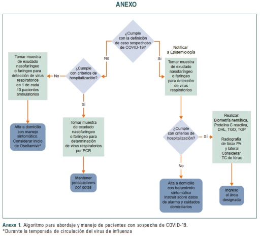 Algoritmo para abordaje y manejo de pacientes con sospecha de COVID-19. *Durante la temporada de circulación del virus de influenza