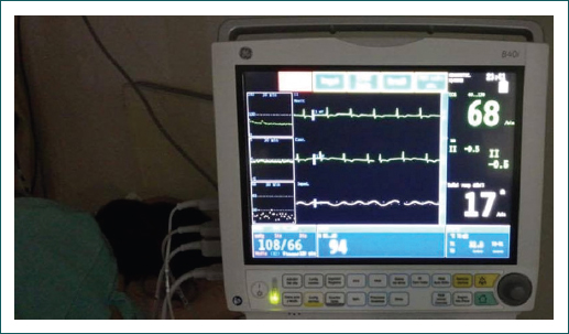 En este caso clínico se realizó el diagnóstico de SDRA asociado a COVID-19, mediante los criterios de Kigali modificados con SpO2/FiO2 menor de 315, radiopacidades bilaterales no explicadas por otra causa y dentro del tiempo estipulado posterior al insulto.16,17,18,19 Dado que el diagnóstico de SDRA por los criterios de Berlín requiere una presión mínima positiva al final de la espiración (PEEP, del inglés positive end expiratory pressure), los criterios de Kigali se propusieron en 2016. Esto con la finalidad de adaptar el diagnostico de SDRA a las condiciones del sistema de salud en los países en vías de desarrollo. Se eliminó el requisito mínimo de PEEP, mientras que la hipoxemia se evalúa utilizando la proporción de saturación de oxígeno arterial medida por oximetría de pulso (SpO2)/FiO2 < 315 con SpO2 < 97%.