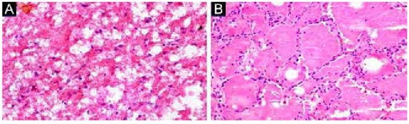 La TACAR (figura 2) mostró datos compatibles con PAP y los estudios histológicos de la biopsia pulmonar (figuras 3 A y B) corroboraron el diagnóstico de PAP (material lipoproteináceo amorfo y ácido peryódico de Schiff [PAS] positivo).