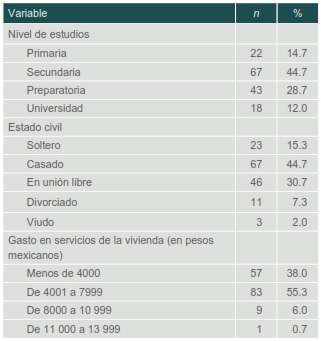 Fuente: elaboración propia con datos de la encuestaEn cuestiones laborales, de las 150 personas encuestadas, el 78% estaba laborando al momento de aplicar el cuestionario. Del total de personas que contaban con un empleo, el 70.7% no estaba yendo a laborar por política de la empresa y dentro de las personas que no iban a laborar, 66.7% recibía su sueldo completo, 6.7% recibía la mitad de su sueldo, 4% recibía el 60% de su sueldo, 0.7% recibía el 70% y el resto no recibía nada. Asimismo, se encontró que el 44.7% de los encuestados manifestó tener una ocupación como operador de maquinaria dentro de alguna empresa manufacturera, 43.3% dijo ser empleado de empresas de otro sector, en tanto que el 12% se dedicaba a labores del hogar.