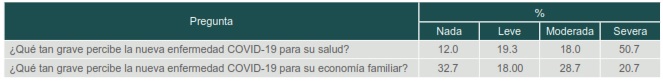 Percepciones sobre el COVID-19 en relación con la salud y la economía familiar