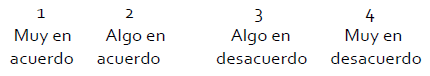 Los puntajes otorgados a cada ítem están en una escala de 1, 2, 3 o 4, donde: