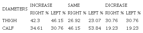 When analyzing the diameter of the thighs that there was an improvement of the thighs in their diameter, the calves a percentage between 46% and more than 50% maintained their same diameters and in some of the participants decreased caused by the weight loss that some had table 3.