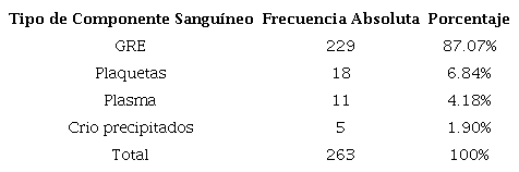Con base en las variables del estudio se evaluó el registro de 263 transfusiones cuyos resultados se detallan a continuación: