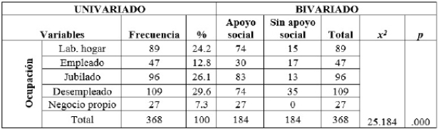Se encontró que los jubilados presentaron 22.6% más apoyo social, estadísticamente significativa con una p: .000. (Tabla 4)