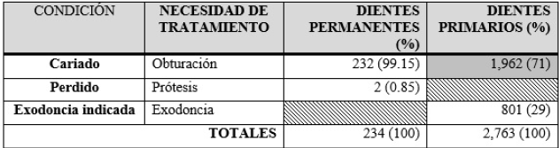 Los datos procesados correspondieron a un total de 3,812 dientes permanentes y 5,732 dientes primarios.
