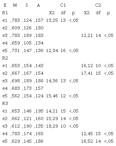 Table 3 shows the characteristics of the non-parametric distribution and the relationships between the categories of freedom of choice with respect to the interruption of pregnancy, considering three rounds of qualification by expert judges in the subject areas.