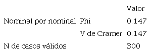La tabla 3, muestra que no existe evidencia para aceptar la correlación entre el género y su preferencia hacia un hospital, como se puede apreciar en la tabla el estadístico V de Cramer = 0.147. La teoría nos señala que cuanto más próximo a cero se encuentre, más independientes serán las variables, es decir, cero es nula correlación; cuanto más próximo a uno sea el número, más asociadas estarán las variables estudiadas19. Por lo tanto no se rechaza la H0, y se afirma que no hay diferencias significativas entre hombres y mujeres con respecto a la preferencia de un hospital privado.