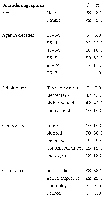 The elementary school level was the predominant scholarship in patients, revealing a 43%, and those living with a stable partner revealed a 62%. These results are similar to what reports Serrani-Azcurra in his study.