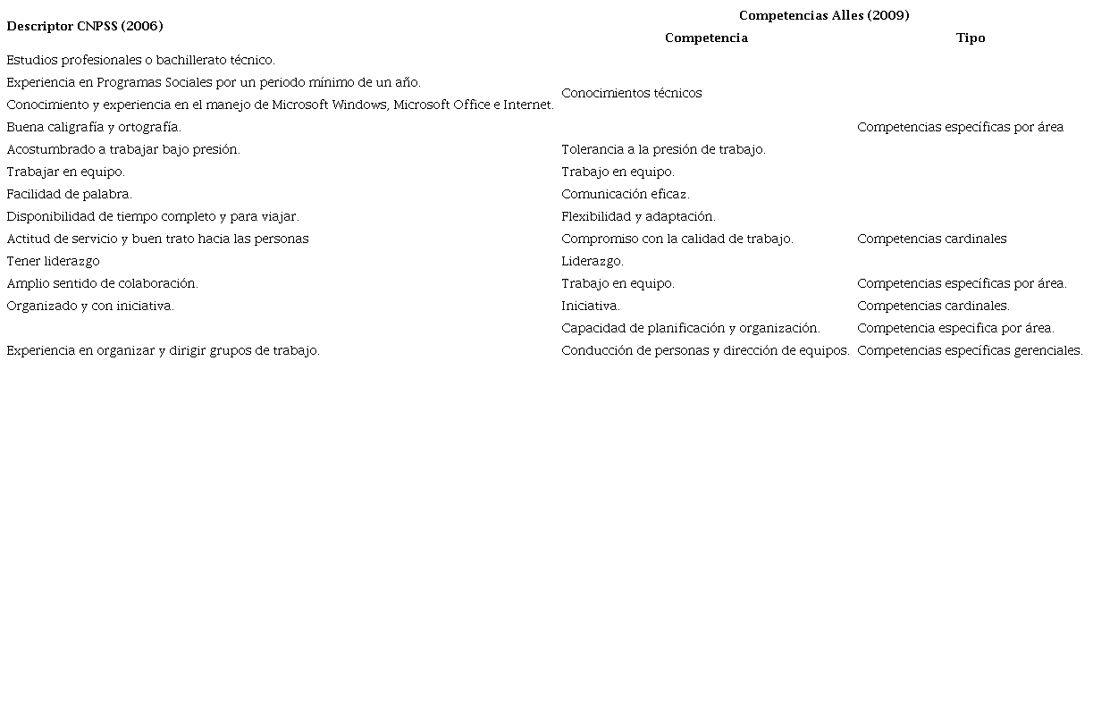 Para esta investigación, la complejidad en la adecuación del modelo ABCD de Alles (2009) aumentó al no contar con un perfil actualizado de los puestos del personal de los MAO, como lo confirmó la CNPSS. .una vez realizada la búsqueda exhaustiva y razonable de dicha información se desprende que no se cuenta con un perfil y competencias para la contratación de personal”14.Sin embargo, la limitante de la información no fue un obstáculo para continuar la investigación y esta se cubrió con el perfil de puestos señalado en el Manual de Procedimientos de los MAO publicado por la CNPSS en 20065