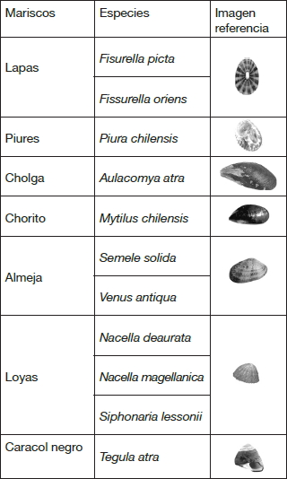 El chaitun incorpora al circuito de comercialización variados productos marinos que no tienen un valor comercial relevante y frecuente, pero si un alto valor nutricional, como las lapas (Fisurella picta), loyas (Nacella deaurata, Nacella magellanica, Siphonaria lessonii) y caracoles (Tegula atra). El siguiente cuadro resume lo observado en las muestras de chaitún, obtenidas en los mercados de Calbuco. Realizado el análisis se identificaron al menos 7 especies correspondientes al detalle indicado en el siguiente cuadro (figura 5):
