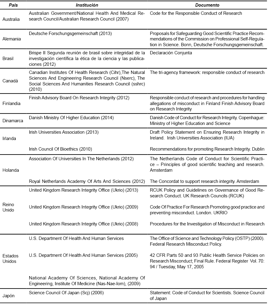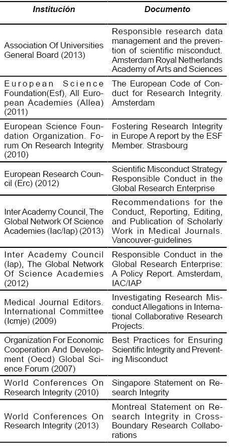 Los organismos públicos y privados vinculados al estímulo de la buena investigación vienen ocupándose de este difícil problema, desde hace ya muchos años. En ese sentido han elaborado múltiples leyes, reglamentaciones, declaraciones, y códigos de ética que buscan reaccionar para prevenir y fortalecer la integridad investigativa. Entre esos numerosos intentos, tanto de organismos nacionales (públicos o privados) como entidades internacionales, quisiéramos tomar nota de aquellos que nos parecen los más relevantes, sea por el prestigio y autoridad moral que tienen los emisores de dichos documentos, sea por la importancia de los conceptos en ellos formulados.