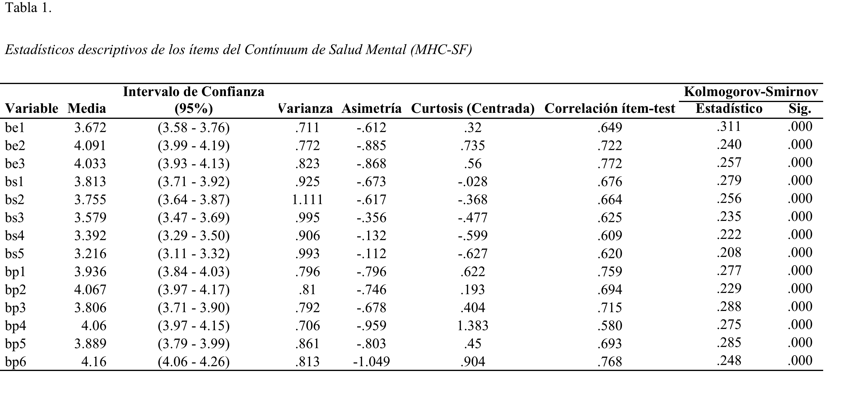 Fiabilidad y validez de la Escala del Contínuum de Salud Mental (MHC–SF) en el contexto ecuatoriano