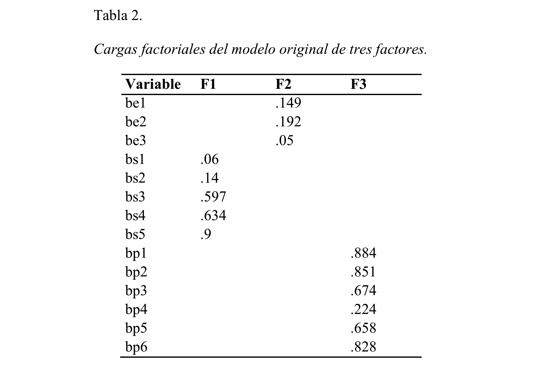 La matriz de cargas factoriales se presenta en la tabla 3.