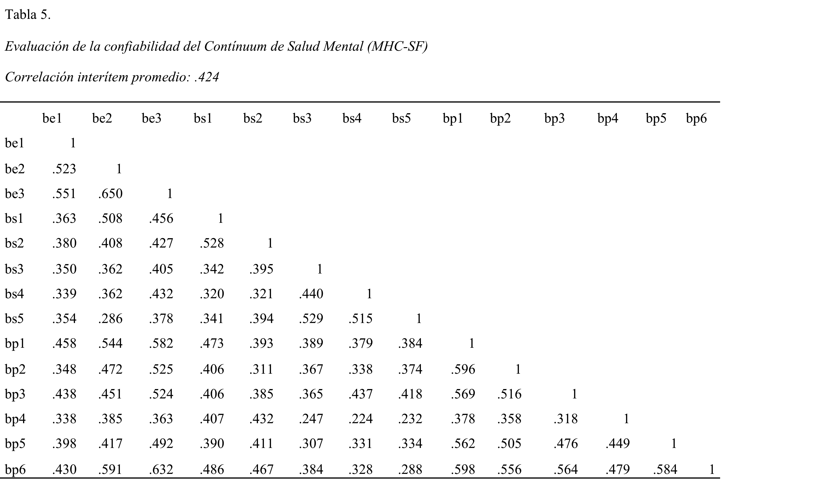 Palabras clave: bienestar, propiedades psicométricas, salud mental, evaluación psicológica, desarrollo instrumental, MHC-SF.