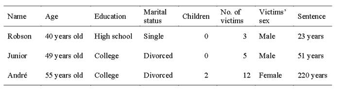 The results are presented below, and each case is described. The narrative of cases was based on the topics established according to the study’s objectives: life history, affective relationships, description of the sexual crime, and assessment of repercussions.
