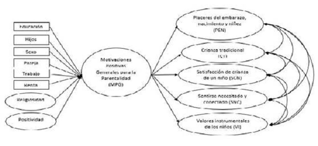 Con el objetivo de determinar si el efecto de las variables predictoras: sexo, tener o no tener hijos, grado de instrucción, tener o no tener pareja, inserción en el mercado laboral, renta familiar, religiosidad y positividad en MPG permanecen invariantes entre las dos muestras, se realizó una MEEMG. El modelo inicialmente testeado es representado en la Figura 1.