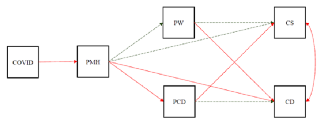 Main Hypothesis - The psychological impacts of the COVID-19 pandemic, through its effects on the parents’ mental health, have a mediated effect on parenting and the child’s behavior, as indicated by Brown et al. (2020), Chung et al. (2020) and Russell et al. (2020).