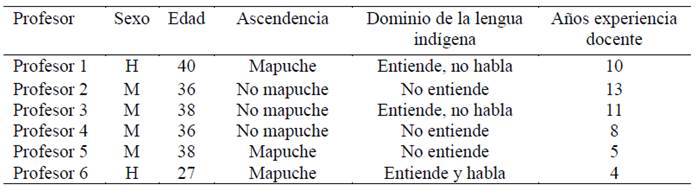 El contexto del estudio se sitúa en La Araucanía en escuelas multinivel situadas en comunidades mapuches rurales de Padre Las Casas (Arias-Ortega, 2020). Los participantes del estudio son seis profesores, descritos en la Tabla 1.