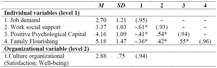 Also considering that the organizational culture associated with employees' values of satisfaction and well-being weakens the impact of work demands and enhances the influence of social support on positive psychological capacities and that these abilities are associated with the level of well-being, it would be essential for managers to seek such cultural value in the organizations they operate in. This strategy is fundamental for the employees to present a positive state, which can be reflected in the achievement of their well-being, not only in the organizational context but also in their family context.