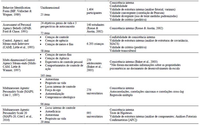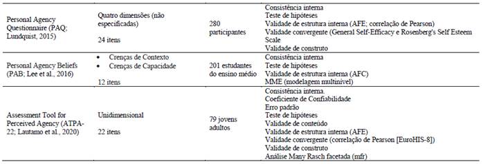 Propriedades psicométricas dos instrumentos de mensuração de agency: uma revisão sistemática