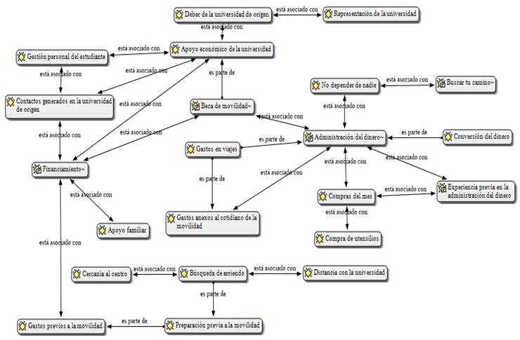Finalmente, las principales fuentes de financiamiento se vinculan con la beca otorgada por la universidad, así como por el aporte de familiares y los recursos económicos gestionados por el estudiante dentro de la universidad. Con respecto a esto último, tanto la beca como la ayuda extra por parte de la universidad se perciben como un deber, ya que el estudiante se posiciona como representante de la institución de educación superior. Sobre esto un estudiante expresa:
