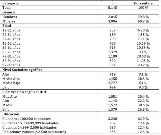 La base de datos con los participantes fue retomada del sitio oficial del INEGI (2023), correspondiente al cuestionario módulo 2, cuya población objetivo son las personas con discapacidad, es decir, quienes indicaron tener alguna de las siguientes características: 1. Dificultades para caminar, subir o bajar escalones usando sus piernas; 2. Ver, aun usando lentes; 3. Mover o usar sus brazos o manos; 4. Aprender, recordar o concentrarse por alguna condición intelectual; 5. Oír, aun usando un aparato auditivo; 6. Hablar o comunicarse; 7. Bañarse, vestirse o comer; y 8. Realizar sus actividades diarias por una condición emocional o mental. Las características de la muestra de estudio pueden observarse en la Tabla 1.
