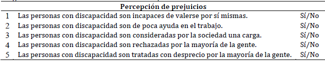 Variables sociodemográficas y percepción de prejuicios de las personas con discapacidad
