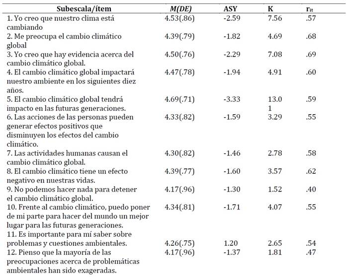 Palabras clave: Actitud, cambio climático, validez, invarianza factorial, confiabilidad.