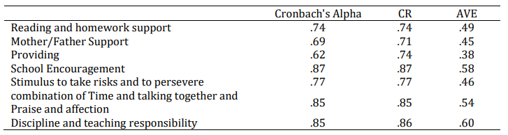 The reliability of all factors was adequate for both evaluated indicators, as can be seen in Table 5. Results were also adequate for the EVA, although some values were lower than the criterion.