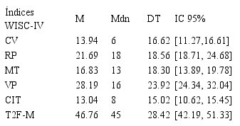 El WISC-IV es un amplio instrumento clínico de aplicación individual para evaluar la inteligencia de niños de 6 años 0 meses a 16 años 11 meses de edad, consta de 15 subpruebas que se organizan en cuatro puntuaciones que representan el funcionamiento intelectual de dominios cognoscitivos específicos (comprensión verbal, razonamiento perceptivo, memoria de trabajo y velocidad de procesamiento), así como una puntuación compuesta que representa la capacidad intelectual general del niño (CI Total). En México, la estandarización del WISC-IV se realizó con 1,100 alumnos que vivían en zonas urbanas y suburbanas de 11 estados de este país, los criterios de exclusión fueron la presencia de discapacidad física o intelectual, padecer una enfermedad y el no tener como lengua materna el español (Wechsler, 2007).