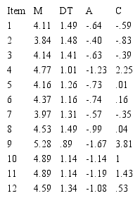 El modelo que presentó un mejor ajuste (cuatro factores correlacionados) presentó un ítem con una carga factorial más baja. Sin embargo, recurriendo a la clasificación de Comrey y Lee (1992), la misma era clasificada como aceptable, lo que justifica la pertinencia de su mantenimiento en el PCQ-12. Otros autores (e.g., Rus et al., 2012, Viseu et al., 2012) optaron, igualmente, por la permanencia de ítems con cargas factoriales más reducidas, lo que permite la preservación de la identidad de este instrumento y facilita la realización de estudios comparativos.