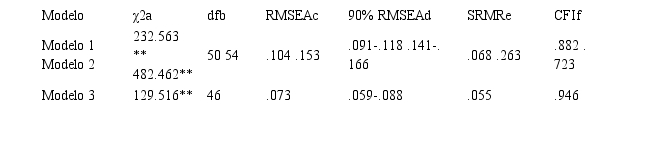 Posteriormente, los tres modelos se volvieron a analizar con la inclusión de estas covarianzas (Tabla 4).