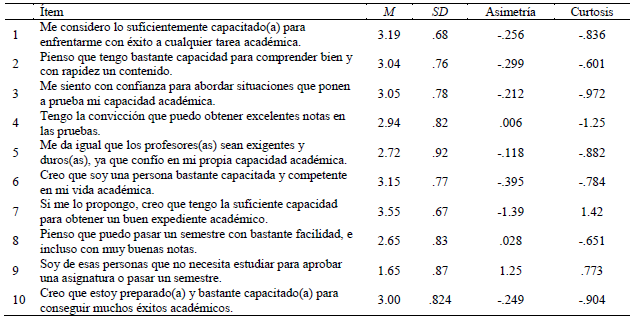 Keywords: confirmatory factorial analysis, perceived academic self-efficacy, university students.
