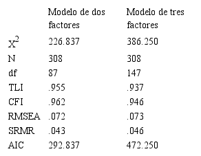 El análisis factorial exploratorio demostró que los 15 ítems de la escala saturaban en un solo factor latente que explicaba el 49% de la varianza total con cargas factoriales desde .54 a .79. El análisis factorial confirmatorio reveló igualmente que la mejor estructura factorial se conseguía con el modelo de un solo factor latente como lo sugiere el conjunto de índices propios de este análisis. La prueba de invarianza factorial también aportó evidencias de validez de constructo pues se encontró que la estructura factorial resultó invariante entre ambos grupos en los que la escala se aplicó con un intervalo de seis meses.